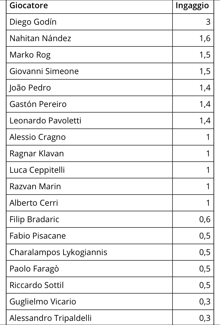 Ecco il monte ingaggi del Cagliari per dirne uno. Il punto è un altro. Credi veramente che possiamo perderci con Pellegri? Difficilmente secondo me, santo cielo anche il Monaco rischia di cadere in piedi, e dire che ha giocato una ventina di partite. Anche pagando noi quel “misero” ingaggio è più che sostenibile, e bisogna che faccia molto molto male e che noi lo riscattiamo e che poi scoppi improvvisamente.