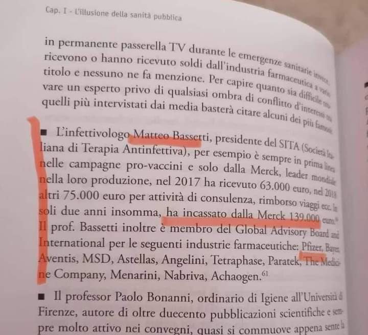 Soldi incassati a parte questo è il boss della società ANTINFETTIVA. Di Speranza si può dire che è incompetente, però Bassetti è il responsabile del "tachipirina e vigile attesa"???? Cioè è una realtà esclusivamente italiana, non esiste altrove e in tutti i paesi i ministri dell'istruzione non sono competenti e tendono a delegare solo che non hanno i Bassetti di turno.