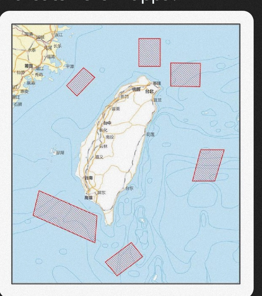 Il PCC ha annunciato una serie di esercitazioni militari attorno all isola di Taiwan dal 4 agosto al 7. Ecco una mappa abbastanza inquietante. IN rosso le zone di esercitazione