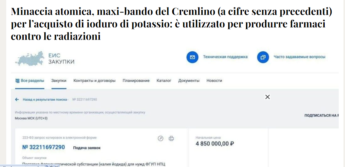 Ovviamente ci saranno indagini "approfonditissime" del Cremlino sul caso, che riveleranno che al 99.7% è stato un attacco NATO.