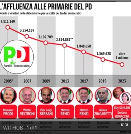 sì crollo costante, questo è il segretario con meno consenso in 15 anni