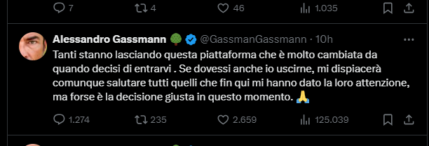 Rispondo a Djici, in merito a "Cercano solo di smarcarsi da Musk. Se Musk avesse ristoranti scriverebbero che non si deve andare a mangiare da lui." Francamente però non ci vedo nulla di sbagliato. X è una piattaforma a scopo di lucro, come è giusto che sia. In teoria, fornendo questo servizio, ci vuoi guadagnare. Se non sono d'accordo con alcune posizioni di qualunque natura esse siano, perchè sarei ridicolo ad andarmene? Perchè devo continuare a postare/seguire un social, arricchendo indirettamente il suo proprietario? Se scoprissi che nostri Admin fossero favorevoli a qualcosa che io ritengo inaccettabile, perchè sarei ridicolo se cancellassi il mio account dal forum? Proprio in nome di quella libertà che dovrebbe essere di tutti, pur nel rispetto delle regole, io decido di cancellare la mia presenza da un social, perchè dovrei essere ridicolo? Non posso semplicemente essere in disaccordo, senza per questo venire tacciato di ridicolaggine?