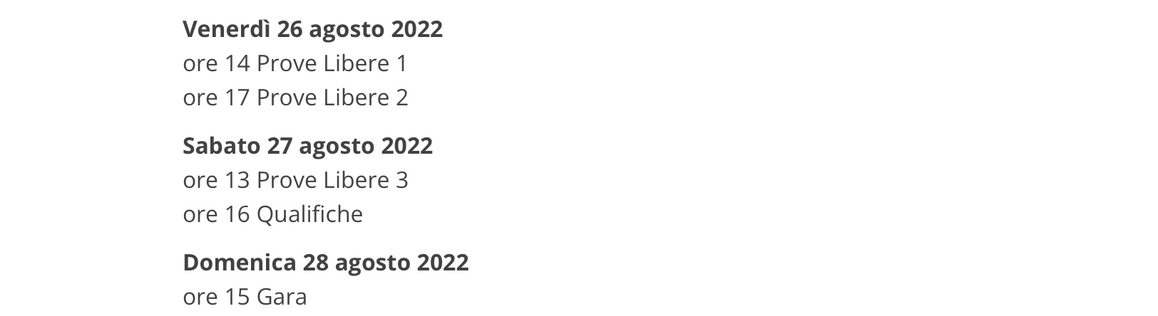 F1 2022 - GP del Belgio - Domenica 28 agosto 2022 ore 15.00