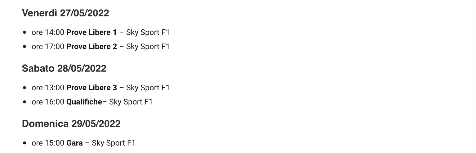 F1 2022 - GP di Monaco - Domenica 29 maggio 2022 ore 15.00
