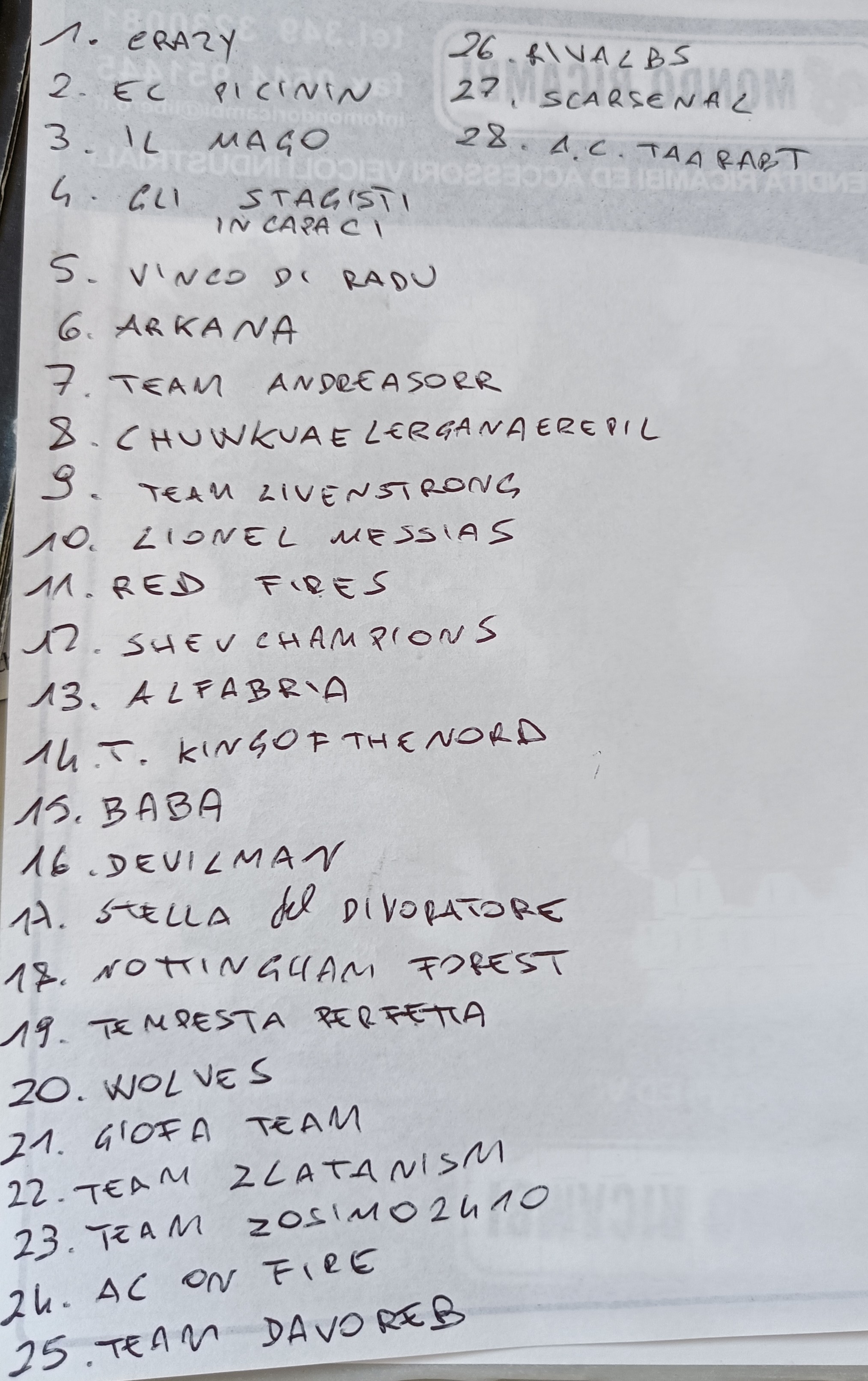 Adesso aspetto indicazioni sull'ultima competizioni da creare ? prima arrivano gli ultimi due prima iniziate ? gli altri intanto possono iniziare