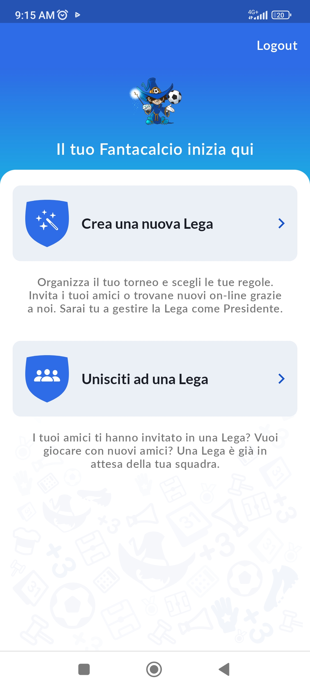 L'unica cosa che ho cambiato è stata la cancellazione delle 2 leghe superflue,prova a mettere il nome della lega e la parola d'ordine..Stamattina ho aperto l'app e mi sono trovato fuori dalla Lega mi chiede codici per entrare..