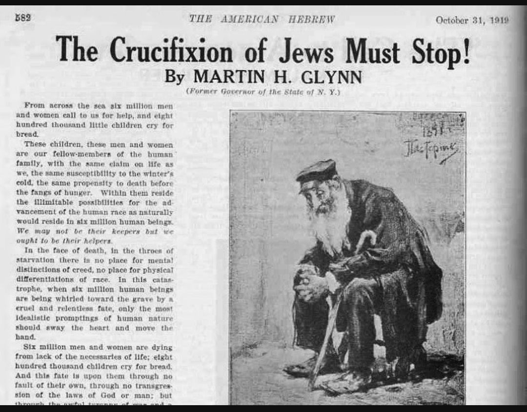 Nel 1919 in America viene detto che SEI MILIONI di ebrei stanno venendo maltrattati in Europa. Ben 20 anni prima dello scoppio della Seconda Guerra Mondiale.