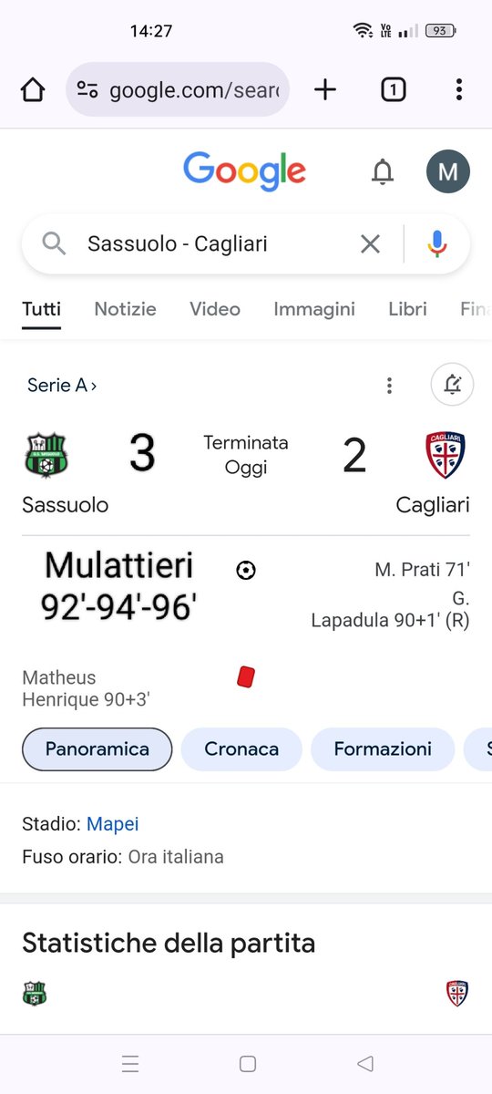 Ho guardato il risultato al 95 e avevo ormai pensato che la partita fosse agli sgoccioli (e stavo già pregustando l'accoppiata sassuolo-udinese in serie B)