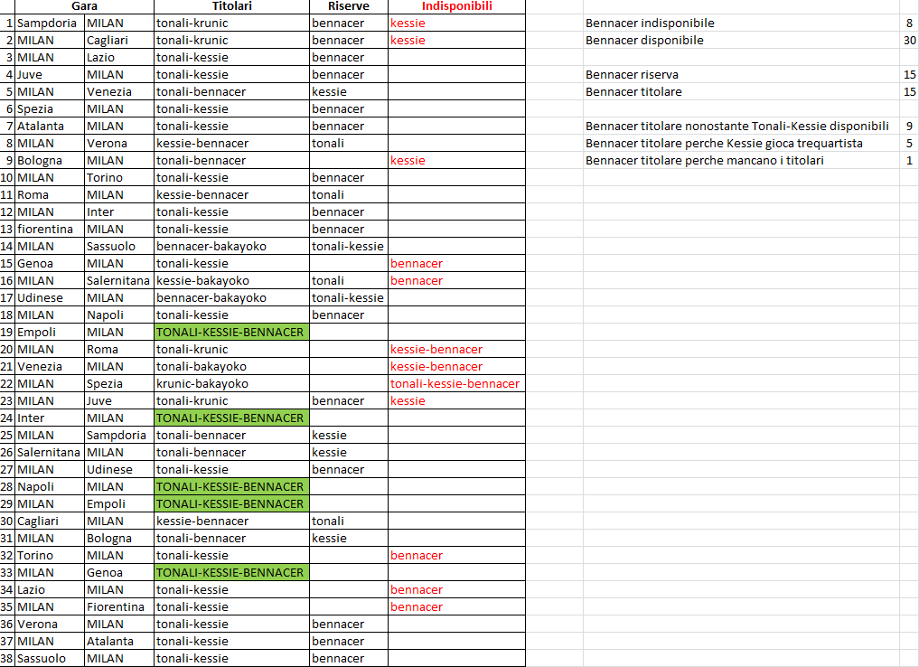Ti do qualche spunto su quanto fosse importante Bennacer rispetto a Kessie. Qui parlo solo di campionato.
