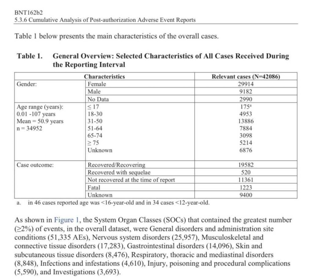 1????? Ok che il vaccino per te è una fede, visto che mi hai fatto il giochino da 50.000 abitanti ti riporto il Post Adverse event di Pfizer che era sotto lucchetto fino al 2074 ma grazie al #Pfizergate è uscito fuori.