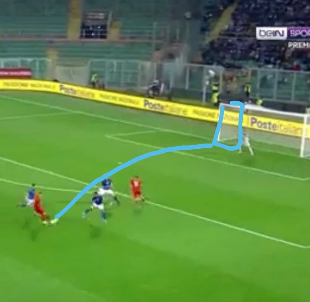 Impressionante il fermo immagine... Era anche posizionato bene... Poteva solo andare in 1 lato la palla... Tiro quasi da metà campo ??????
