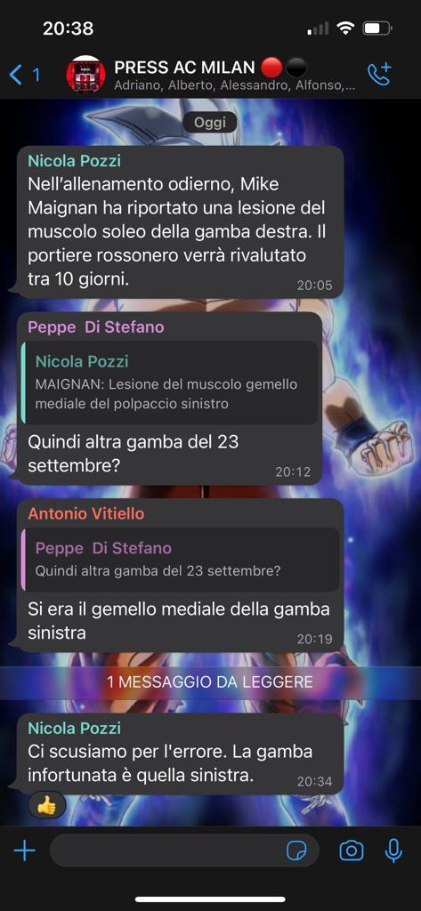 Andreas89 Senior Member Registrato 27 Agosto 2012 Messaggi 32,761 Reaction score 3,226 19 Ottobre 2022 #38 Toby rosso nero ha scritto: Il Milan comunica che Maignan ha riportato una lesione del muscolo soleo della gamba sinistra. Verrà rivalutato tra 10 giorni. Clicca per allargare... Quindi senza mike non abbiamo speranze contro dinamo e Salisburgo? Beh allora non giochiamole. Risparmiamo energia.
