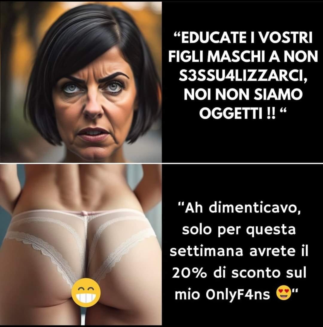 Questa ha deciso di reagire al dolore dopo mezz'ora che hanno trovato il cadavere con la faccia sfigurata attaccando il Salvini bianco, la convenzione in cui FDI si è astenuta, minimizzando l'assassino dicendo che tutti gli uomini sono così, ha girato ogni telecamera di giornali e TV, ha aizzato migliaia di giovani malleabili sui social ad un odio verso gli uomini.
