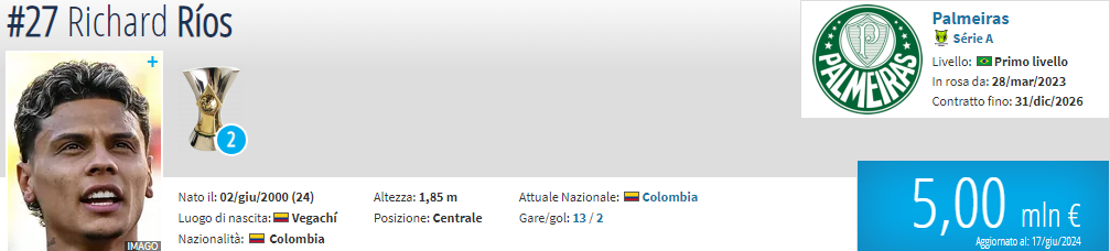 Secondo Sportitalia, Rios costa sui 30 mln (clausola da 60 mln).