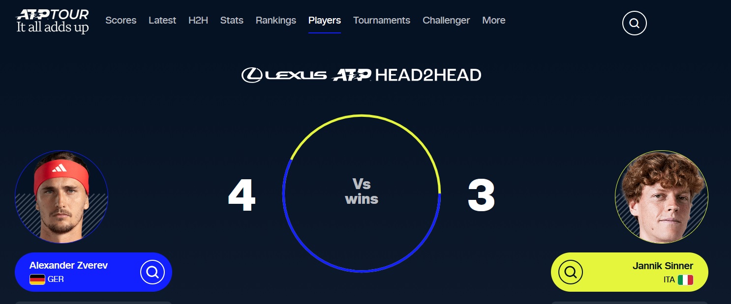Finirà 6-2 6-3 senza appello..ormai zverev con Sinner non la vede più