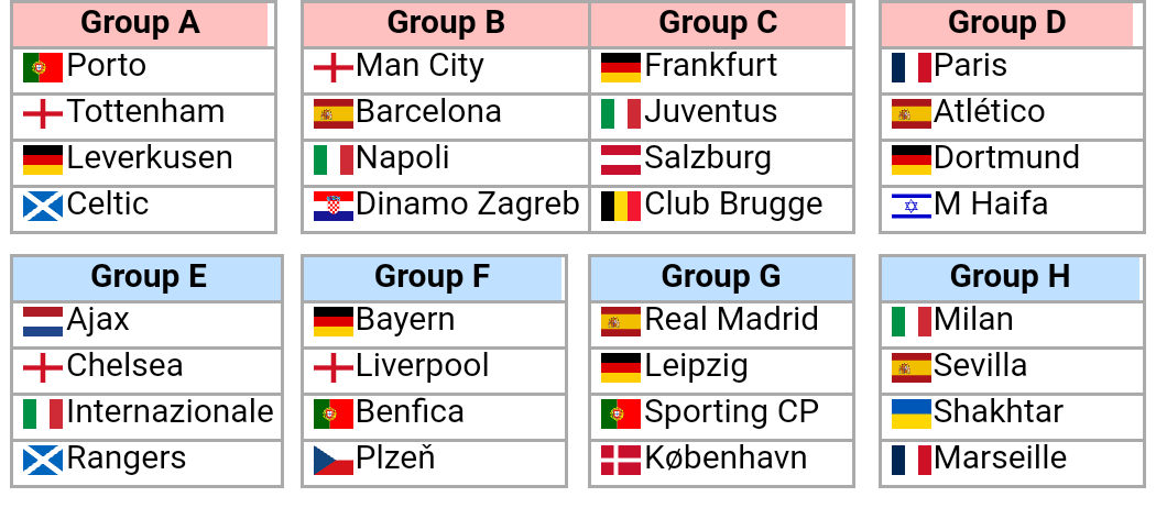 Ajax-Atletico Madrid-Borussia Dortmund- Dinamo Zagabria