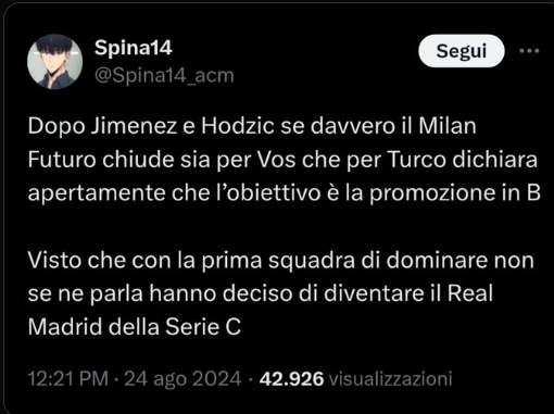 E paga tutto solo Fonseca/Conceicao, e Ibra declassato. Mentre Furlani, Moncada saranno ancora la, anzi, Moncada promosso a DS.