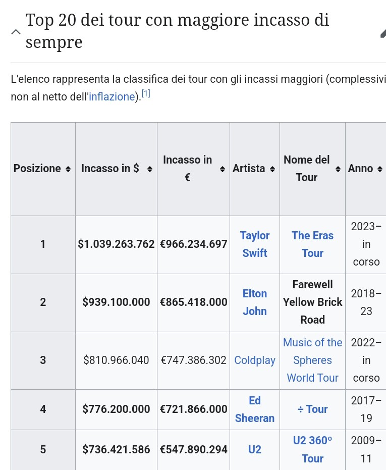 Questo è solo il dato relativo all'ultimo tour, altri 260mil li ha incassati col film del concerto uscito al cinema, vedi un poʻ te :asd: questa se si candida non c'ha manco bisogno di fare campagna elettorale per vincere