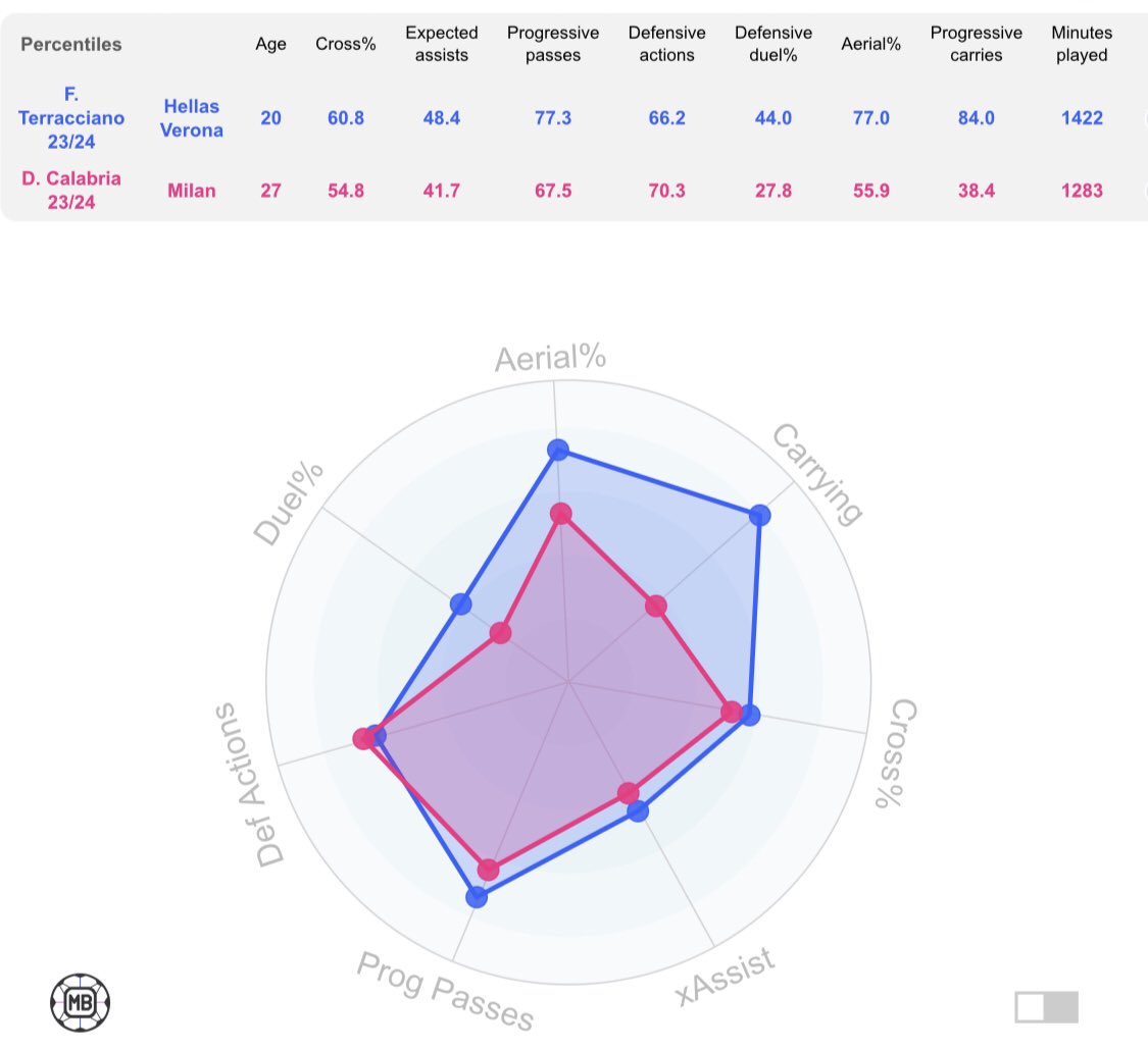 Sulle fasce come terzini hai trovato sto ragazzo di 20 anni che dai dati pare dare le piste a Calabria e gioca sia destra sia sinistra quindi potrebbe a regime essere il primo cambio universale per chiunque come terzino, una sorta di “darmian” che ha l’Inter. Di 20 anni però. Al costo di un ballo toure qualsiasi (5 mln).