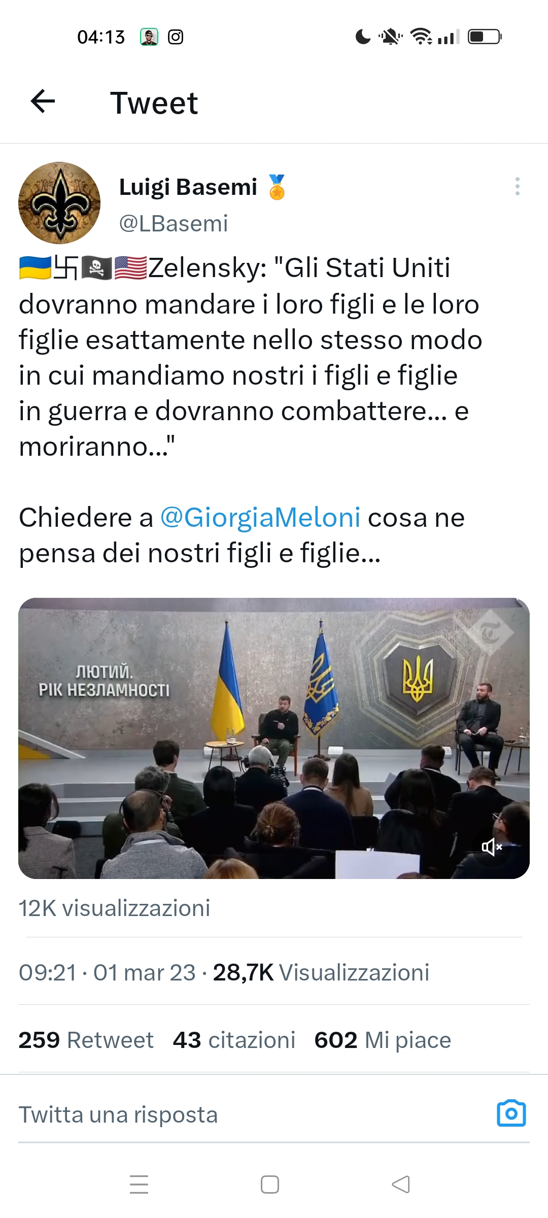In una conferenza stampa hanno chiesto a Zelensky cosa accadrebbe in caso di sconfitta dell’Ucraina. Nella sua ipotesi, una sconfitta dell’Ucraina comporterebbe come step successivo un’invasione russa dei Paesi baltici NATO, il che implicherebbe la reazione degli USA, che quindi sarebbero costretti a mandare proprie truppe a combattere.