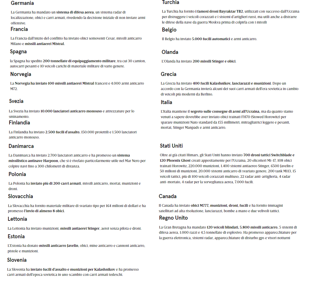 Questo è quello che sappiamo sugli armamenti inviati, ovviamente molte armi sono passate nel sottobosco, sicuramente quelle più avanzate, ma la maggior parte sono queste: