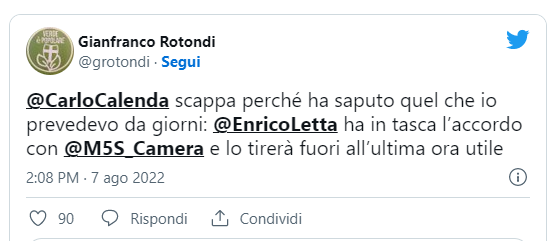 Calenda in questo inizio di campagna elettorale ha perso qualunque tipo di credibilità, dai. Quando ha firmato con letta sapeva che Di Maio&co ci sarebbero stati.